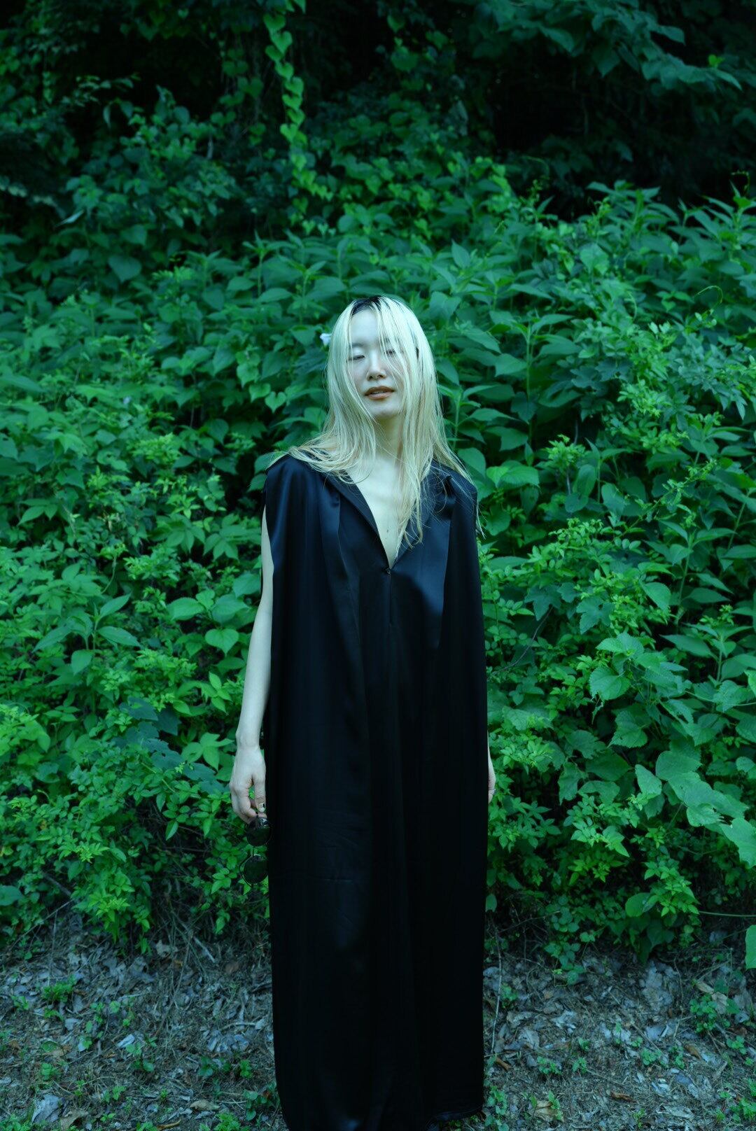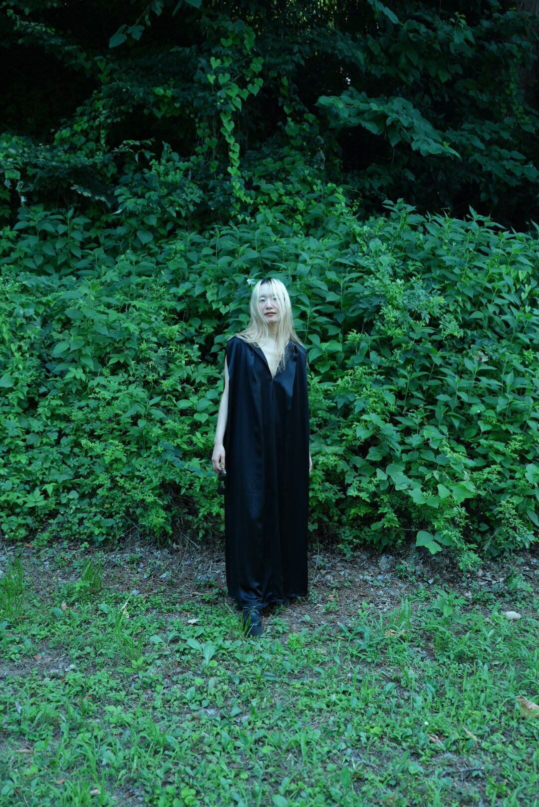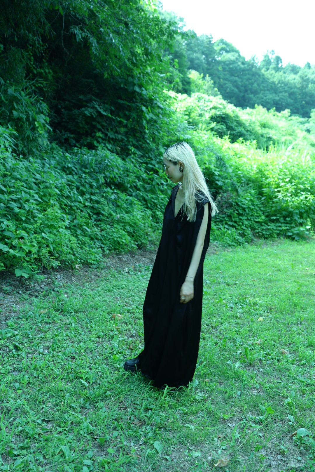 艶黒のレーヨンコットンで仕立てたロングドレスGAZZ
