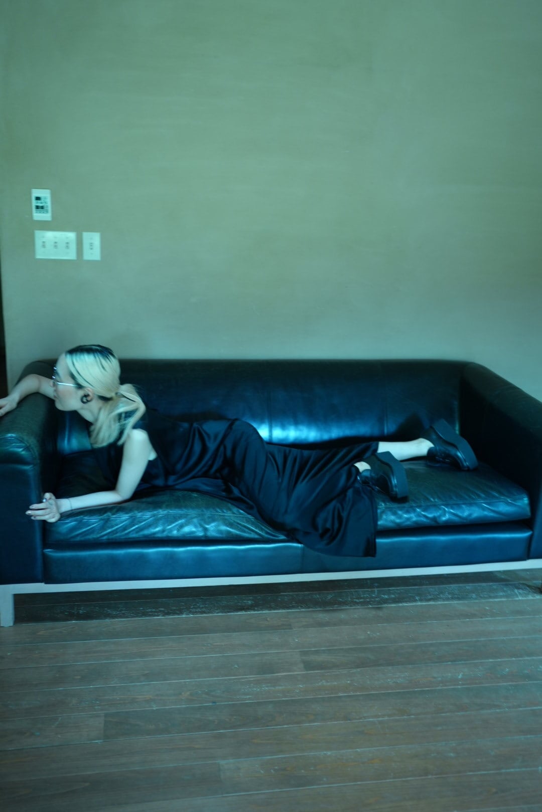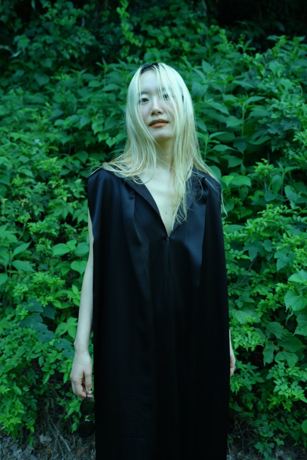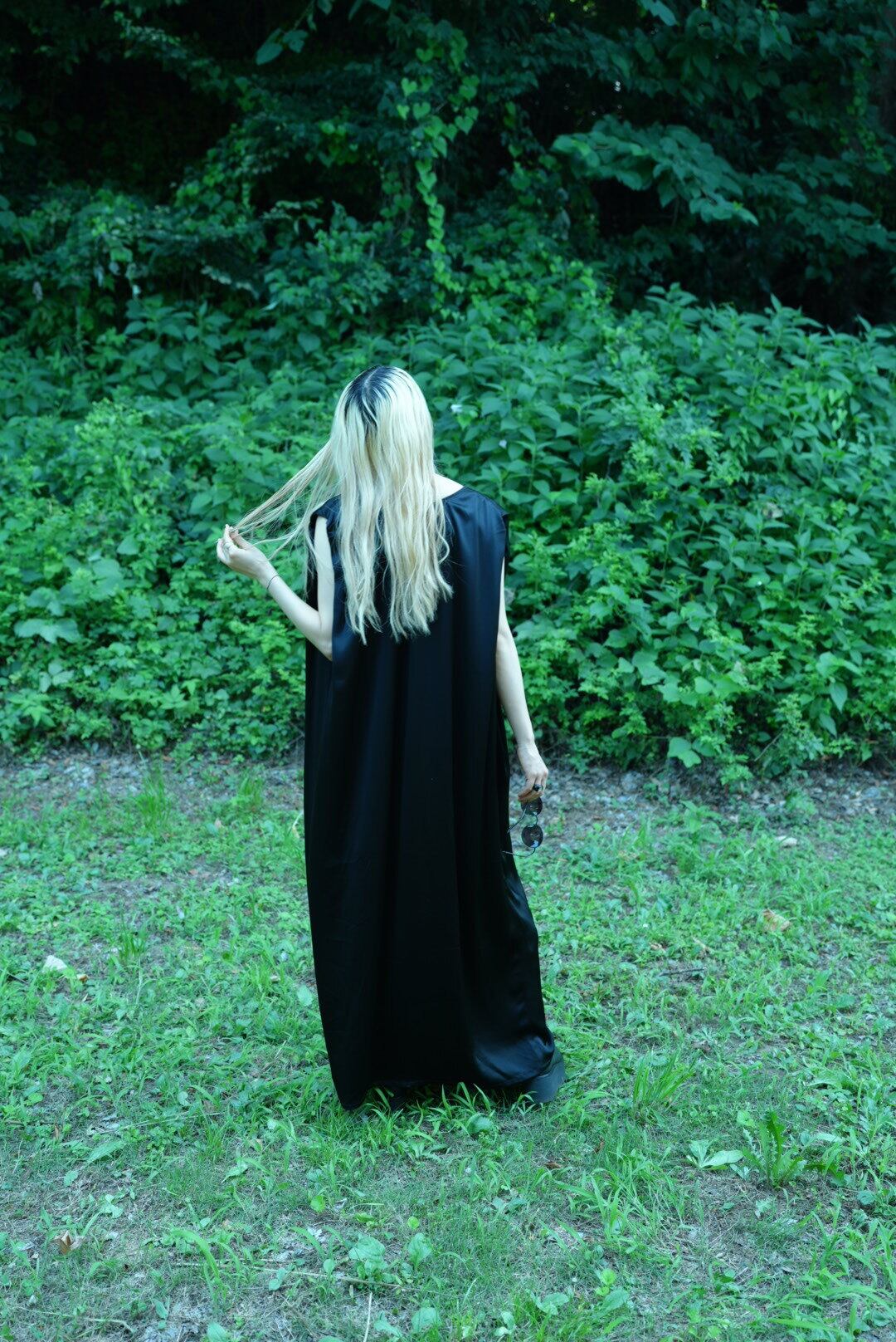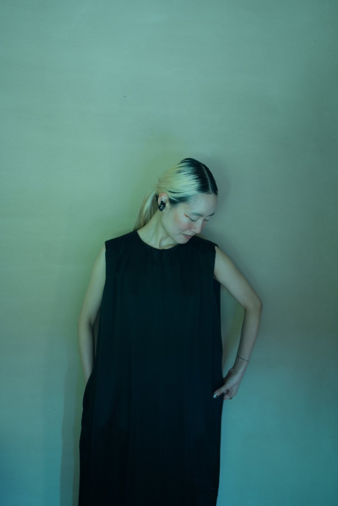 艶黒のレーヨンコットンで仕立てたロングドレスGAZZ