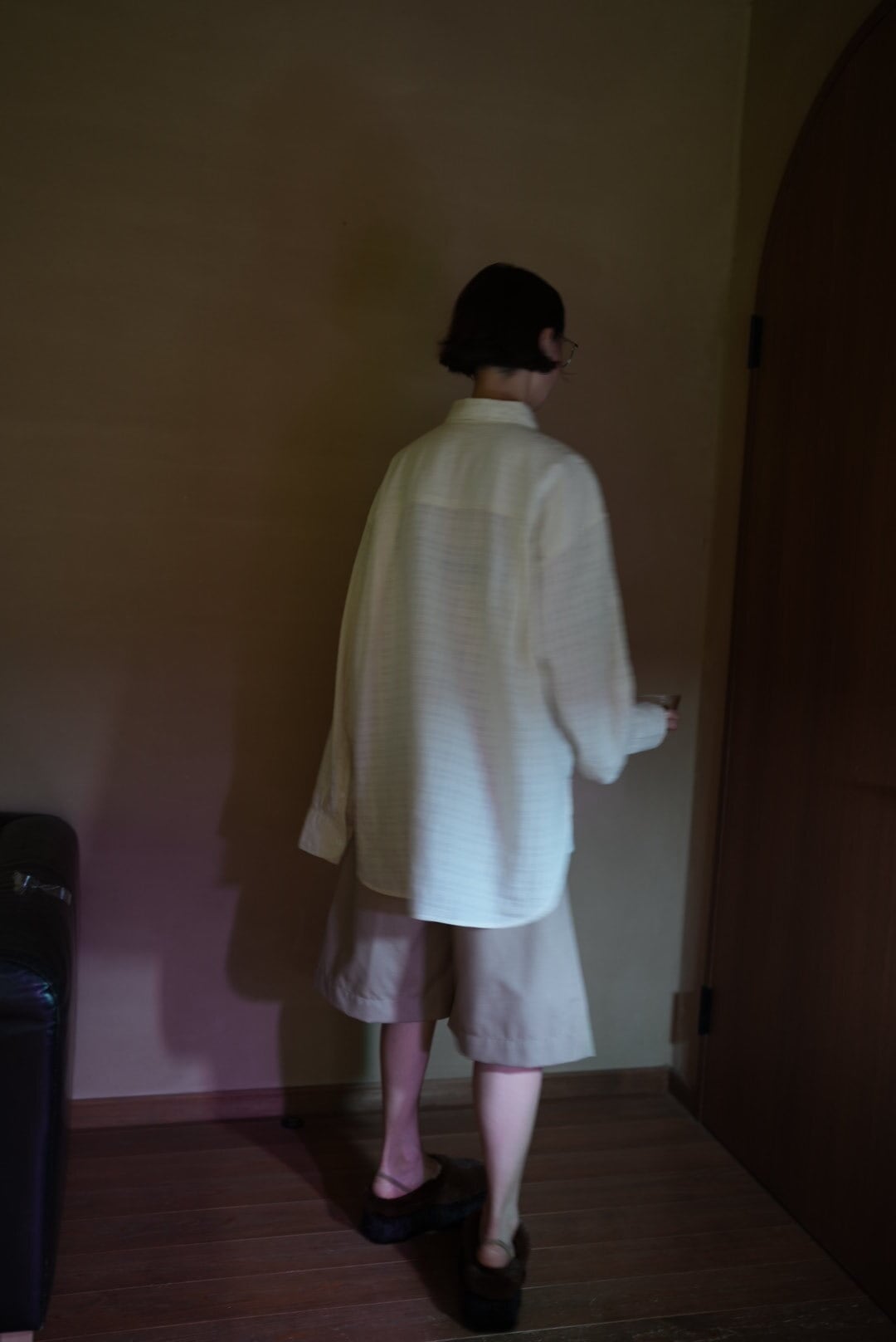 袖も丈も長めで服の中で身体が泳ぐバランス