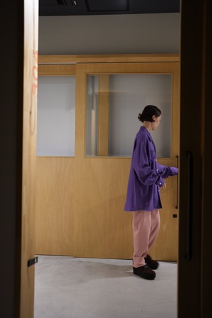 レングスとウエストギャザーのボリュームは何度も修正を重ねて長めに設定したレングスを10cmくらい折り返して履くことに着地。裾にちょっと溜まる感じがいいんです。