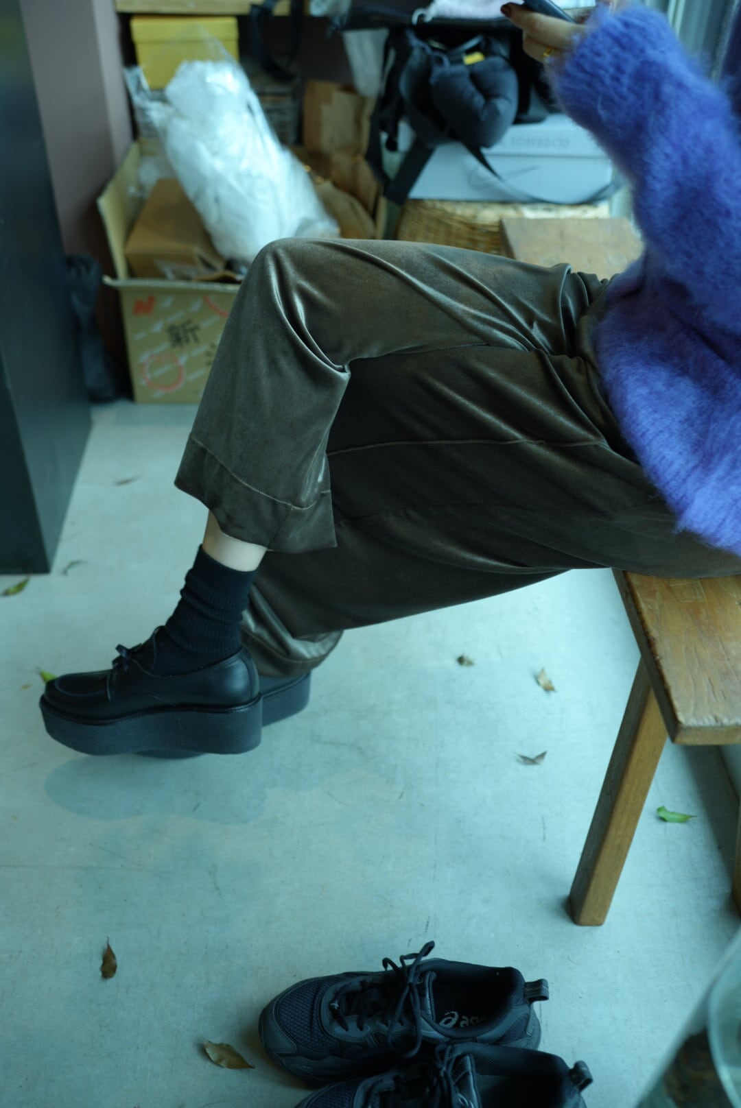 コットンレーヨンの柔らかい落ち感のあるベロアパンツ