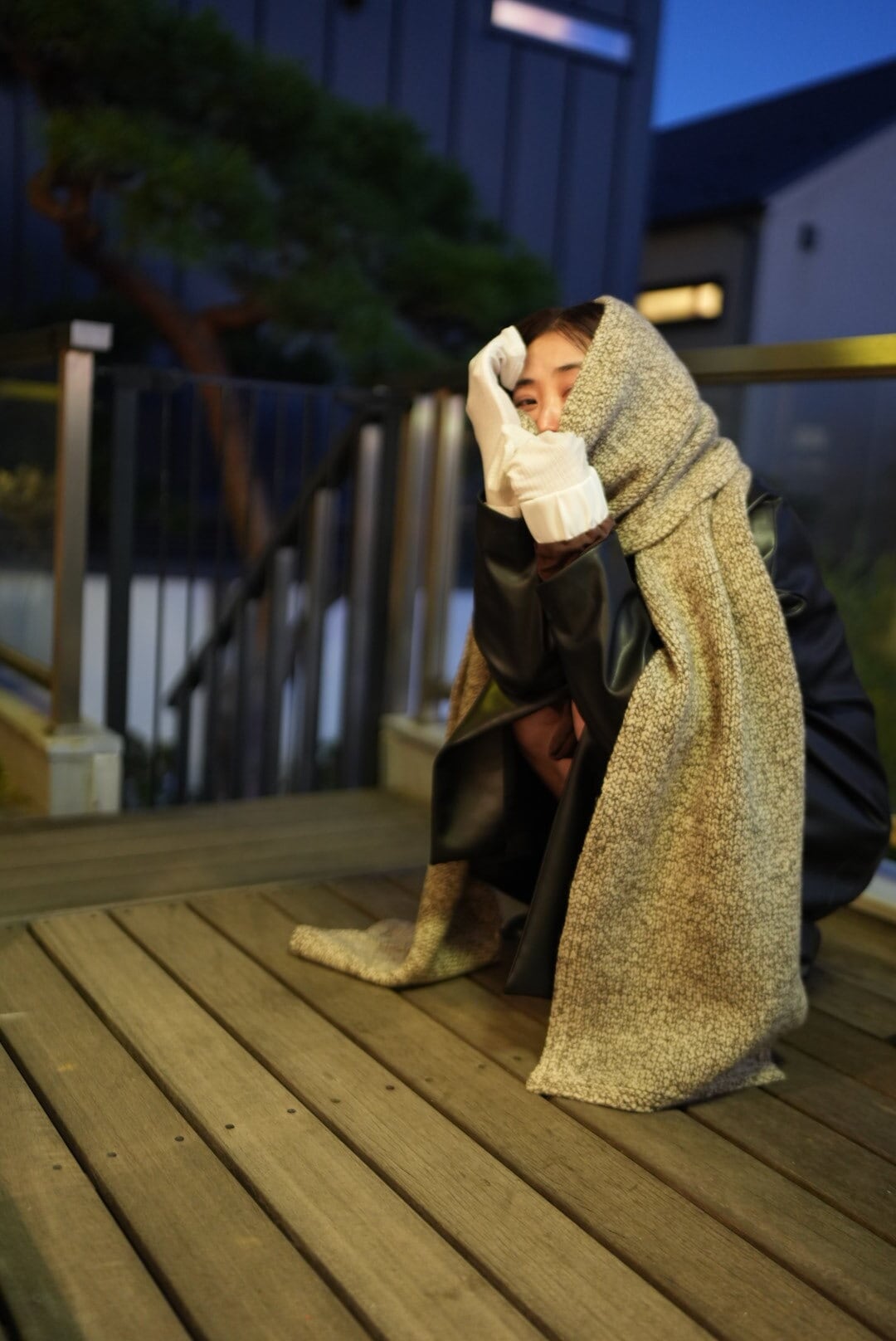 オリジナルで糸からオーダーメイドした大判ニットマフラー
