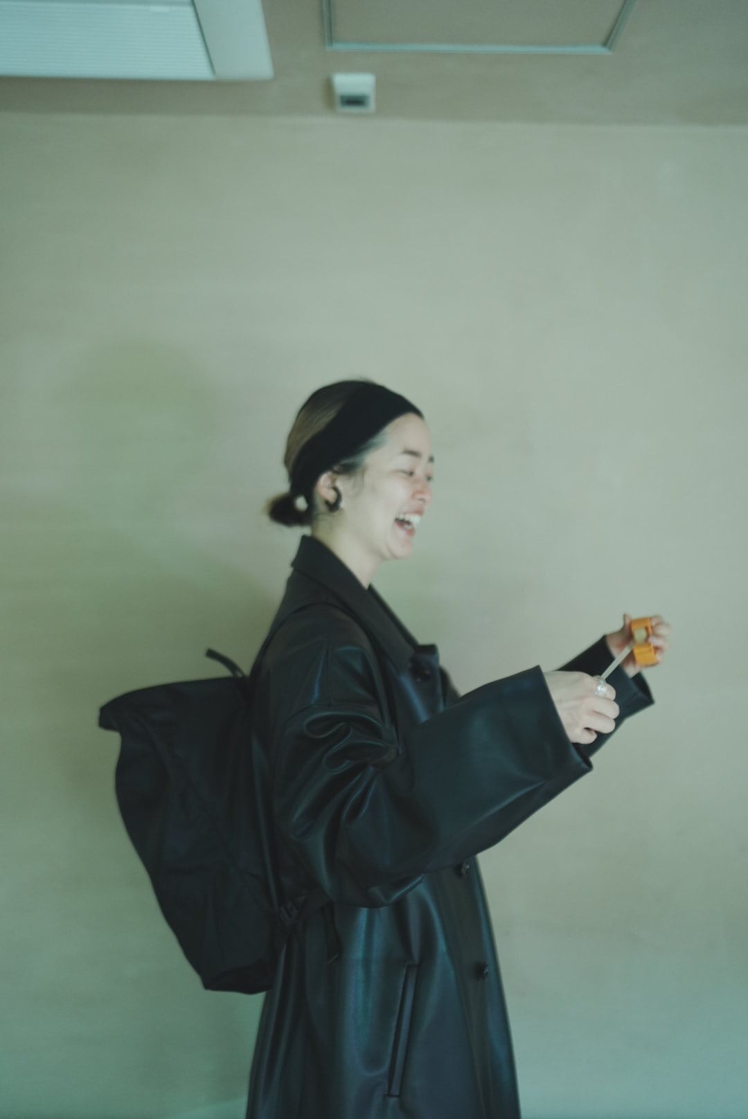 肩もドロップして中にオーバーサイズのものを着ても羽織れるようにしました