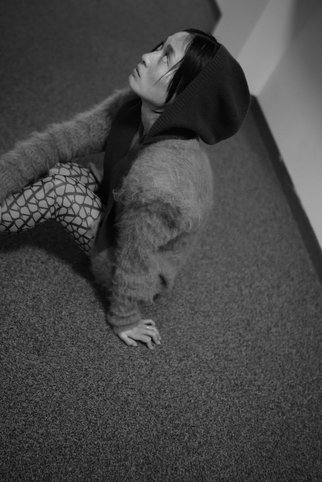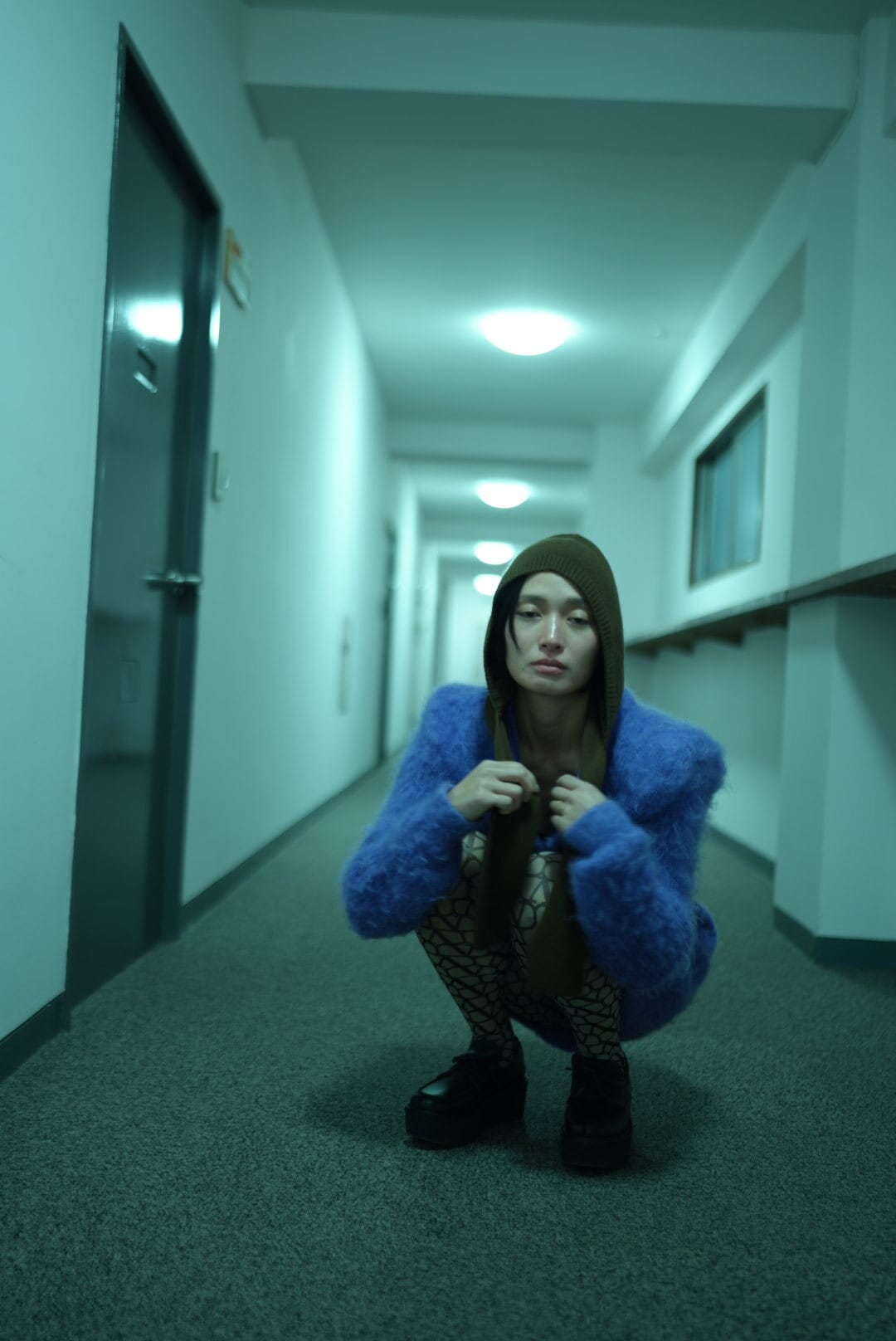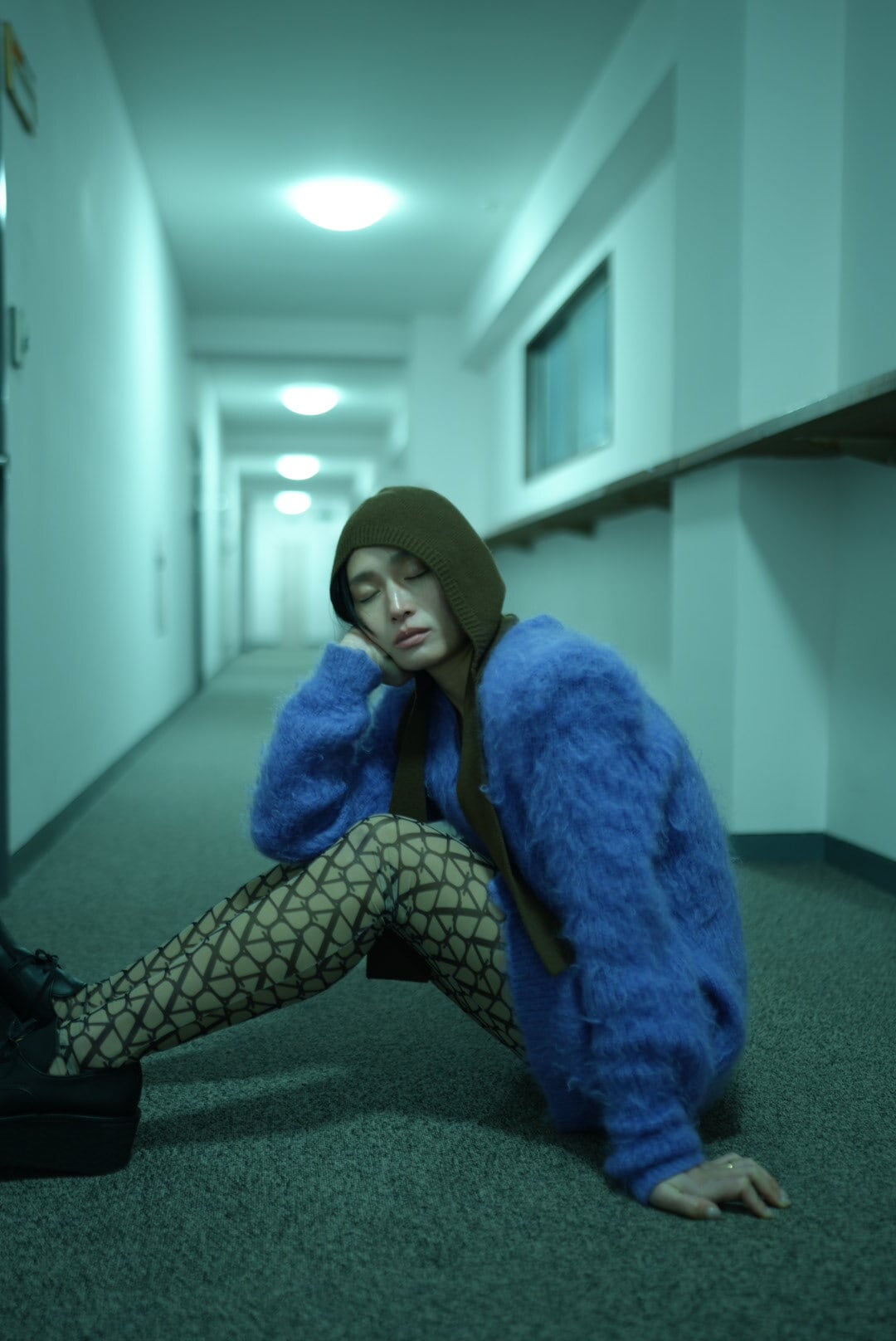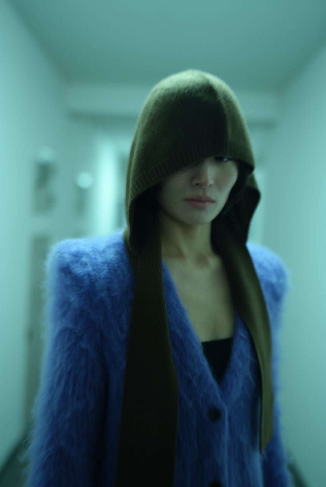 フード部分は縫い目のないホールガーメントで編み頭のかたちがきれいに見える形状にこだわりサンプルを何度も繰り返しました