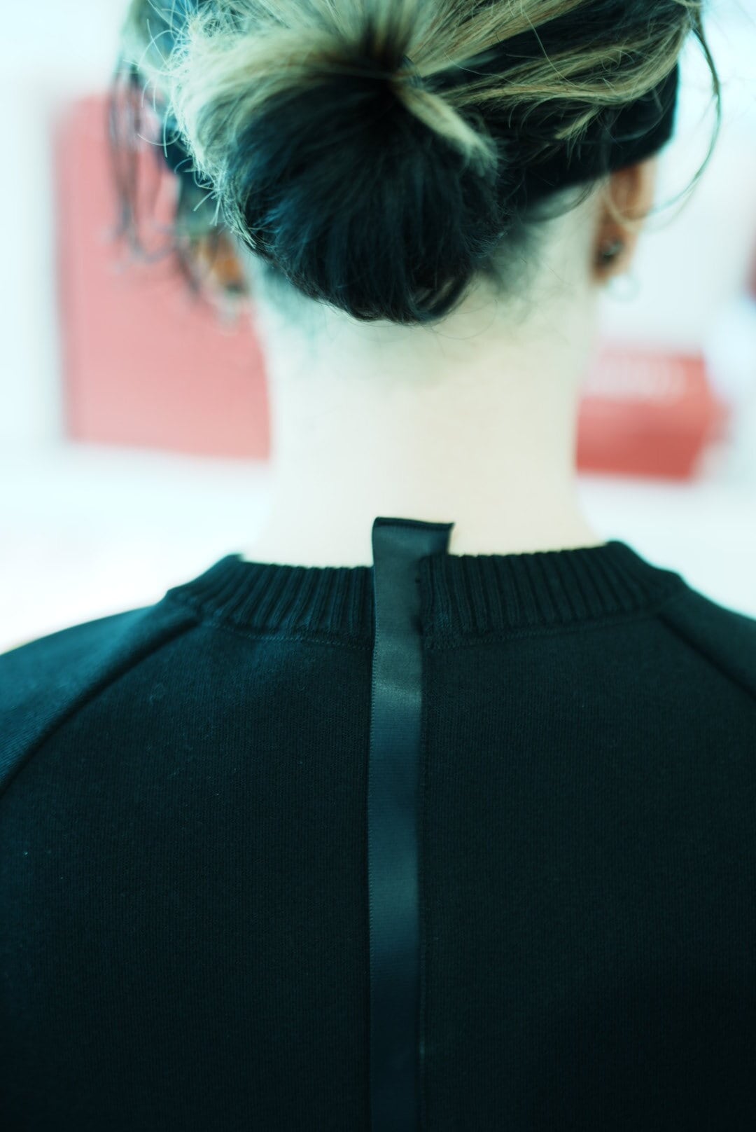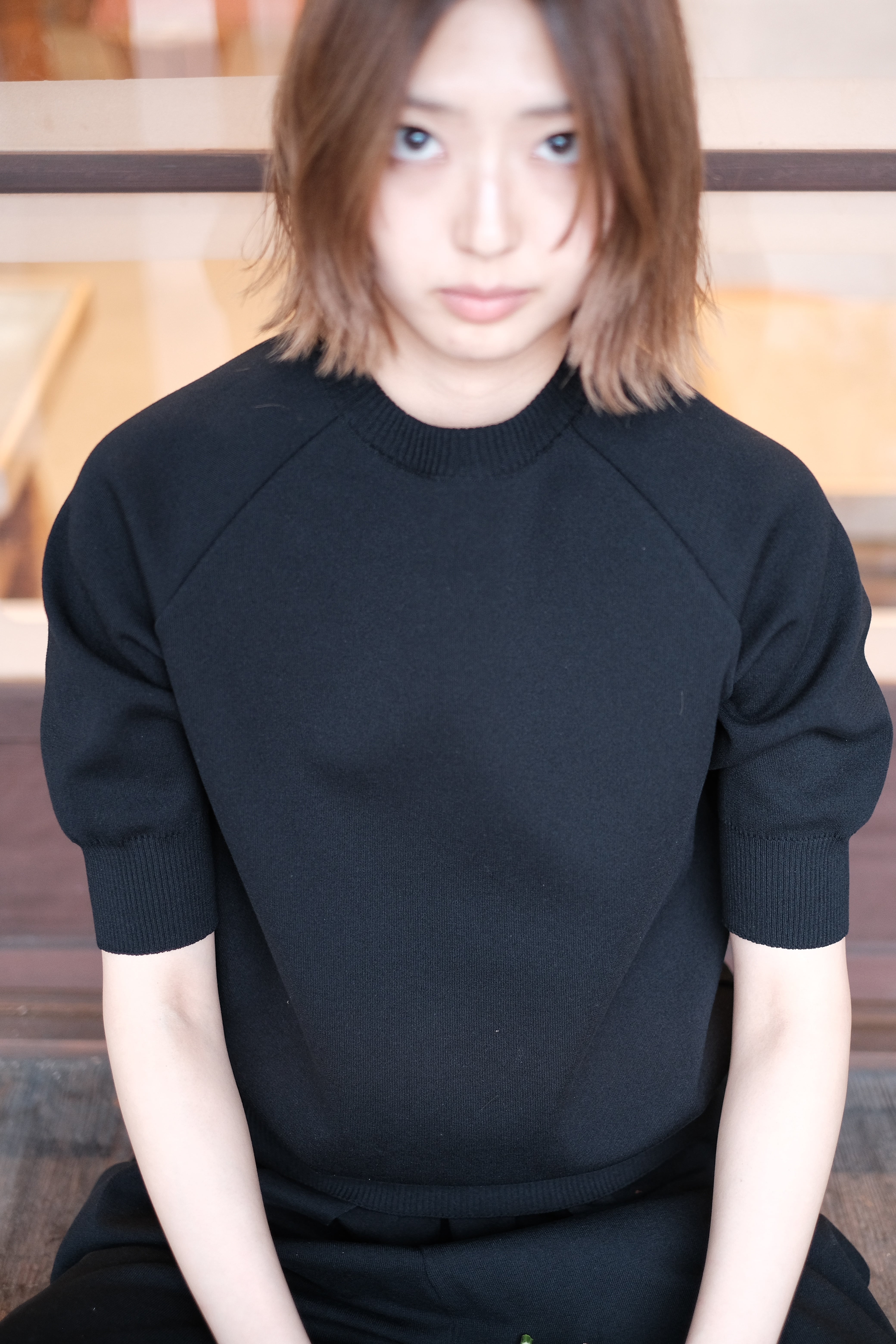 全体のサイズ感や衿の開き・袖・着丈はスッキリ。ミリ単位でサンプルを繰り返し首〜肩の骨格がきれいに見える絶妙なバランスを追求しました。万能に使えるトップスだと思います。
