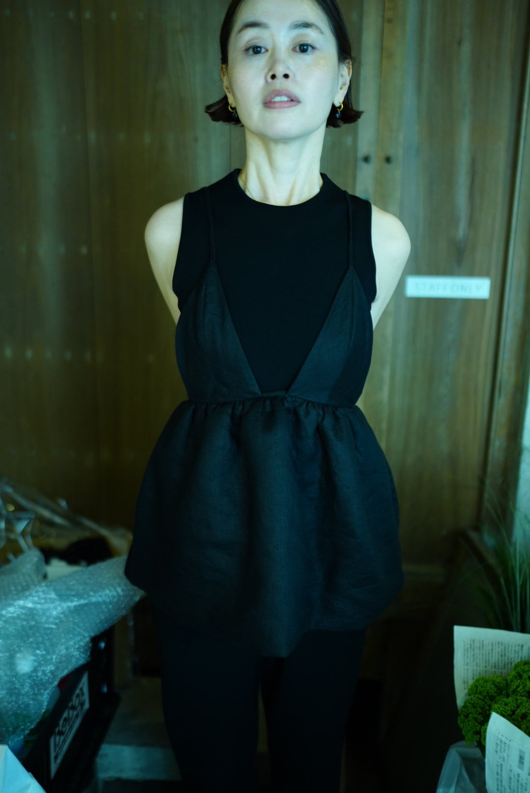 ハリのあるリネンで仕立てたキャミソールショートドレスBOTH
