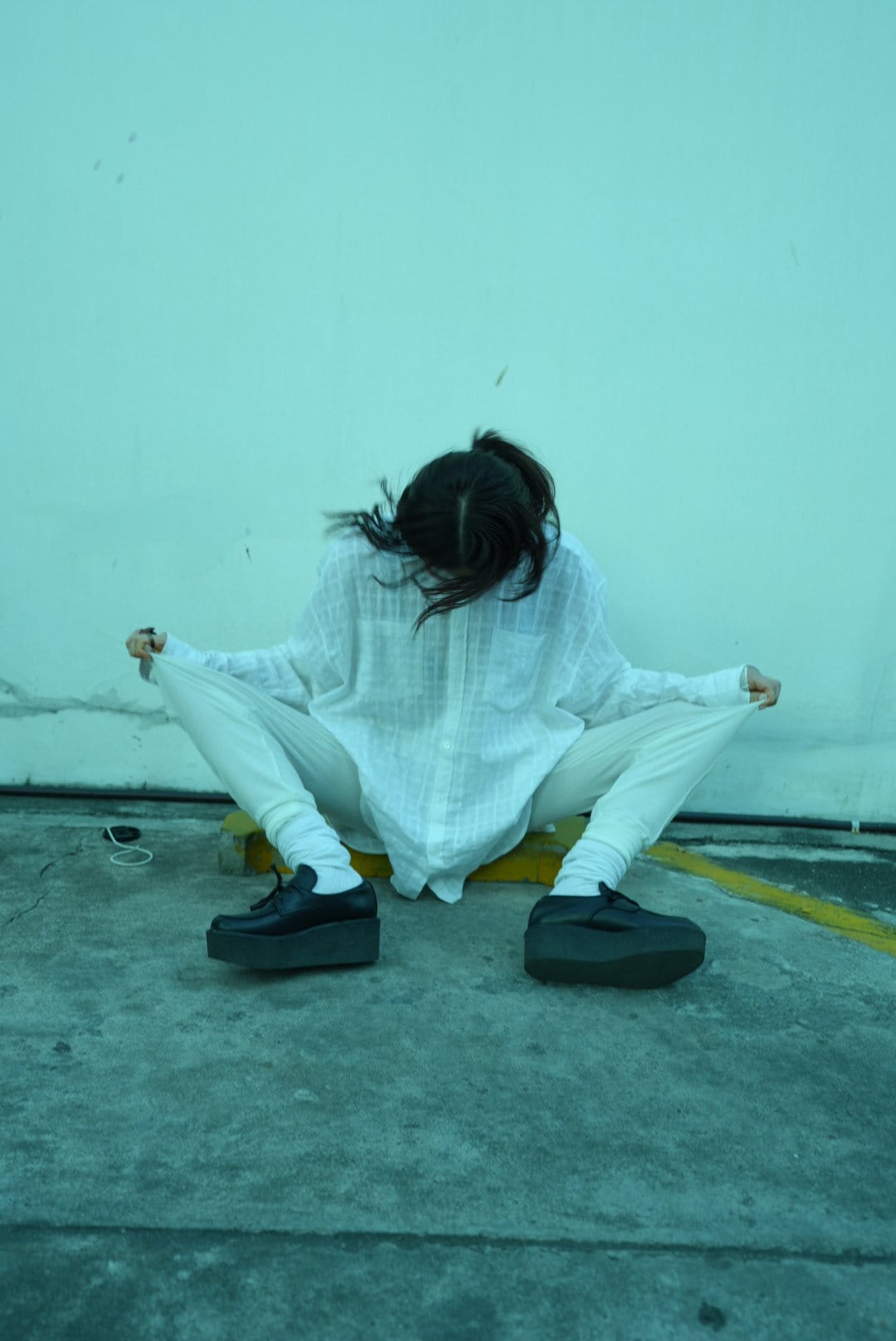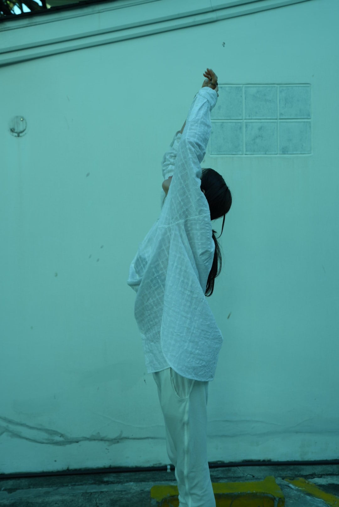 袖も丈も長めで服の中で身体が泳ぐバランス
