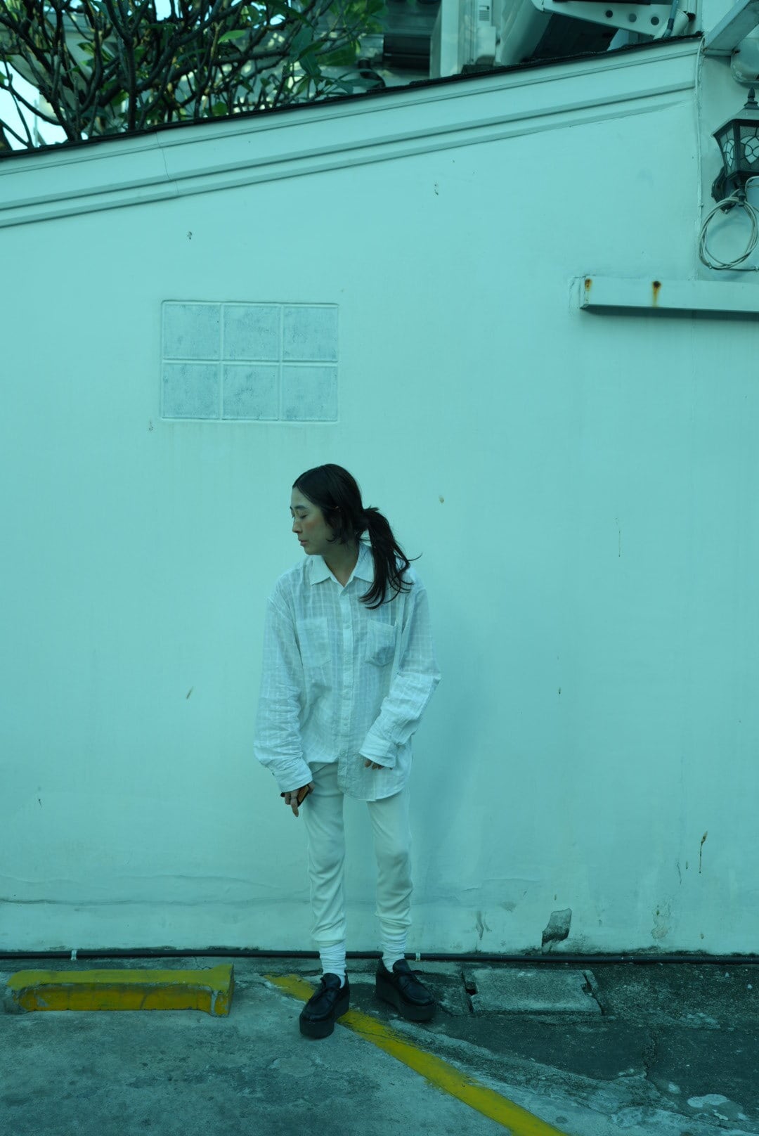 透ける白の上にのってくる白チェック