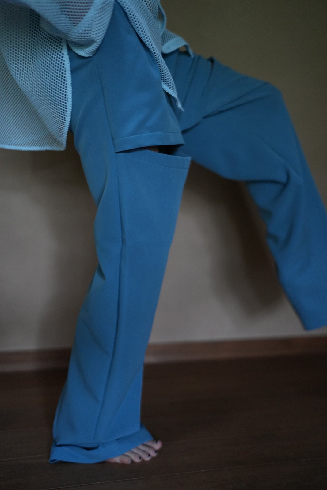 落ち感のある生地PYREで仕立てたスリットデザインが入ったスラックスJIM