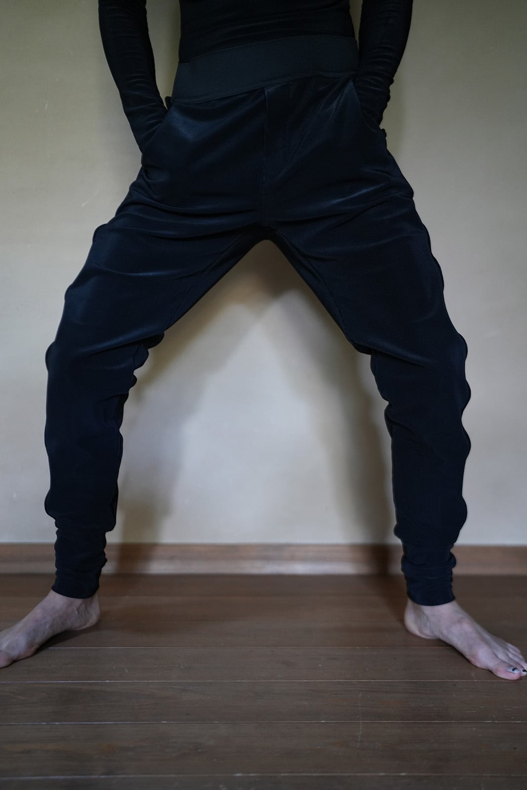 裾は長めにキュッと絞ってる